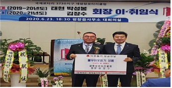 새평창로타리클럽(회장 김장수)은 회장 이·취임식에서 받은 쌀500kg을 주변 어려운 이웃을 위해 사용해 달라며 읍사무소에 기탁했다.
