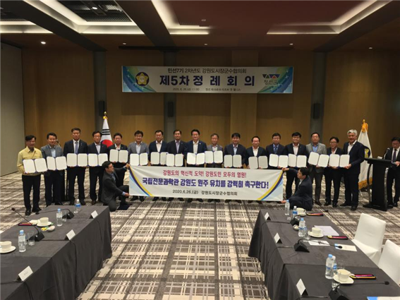 강원도시장군수협의회는 오늘(26일) 오전 정선군에서 열린 민선7기 2차년도 제5차 정례회에서 ‘국립전문과학관 원주 유치’를 위한 공동 성명서를 발표했다.
