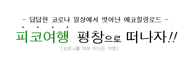 자. 이러고 있을 때가 아니다. 답답한 일상에서 벗어나 평창으로, 피코여행(코로나를 피해 떠나는 여행)을 떠나자!