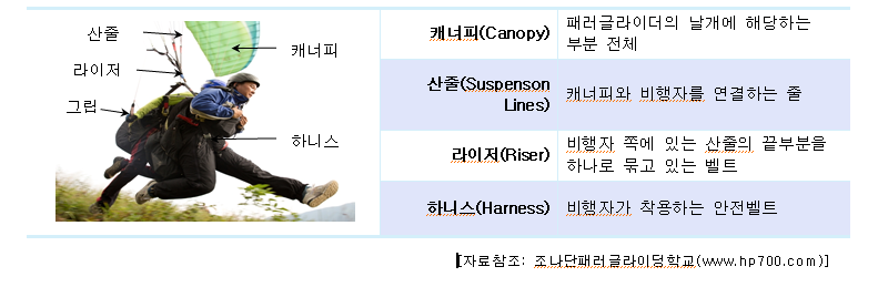 애정을 갖고 보면 알게 되고 또 아는 만큼 보이는 법. 일반인들에게 아직은 생소한 패러글라이딩이 친근해지기 위해서는 우선 패러글라이더에 자주 쓰이는 용어에 익숙해지는 것을 추천한다.