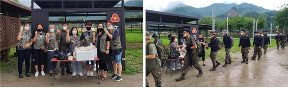 대화면 여성예비군(소대장 마영희)은 6.25전사자 유해발굴에 힘쓰고 있는 장병들의 노고에 조금이나마 도움이 되길 바라며 농협마트(점장 김애정), 평창군 새마을부녀회(면회장 정성연), 상가번영회(회장 강덕호), 신협(이사장 오정희), 대화5리 부녀회(회장 유영선)와 함께 직접 삶은 옥수수와 빵·음료 200개를 전달하여 격려했다.