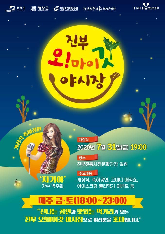 평창군이 7월 31일(금)부터 진부전통시장 공연장 일원에서 진부 오! 마이 갓 야시장을 운영한다고 밝혔다.