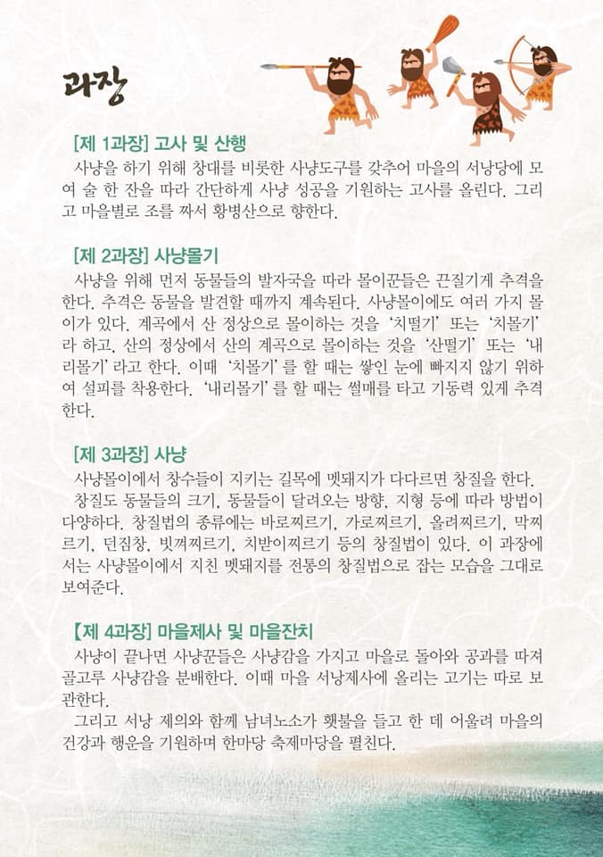 평창황병산사냥민속보존회(회장 최종근)는 8월 6일(오후 4시), 7일(오후 7시) 이틀간 ‘알펜시아 시네마’에서 마당극 ‘황병산에 멧돼지 잡으러 가세~’를 선보인다.