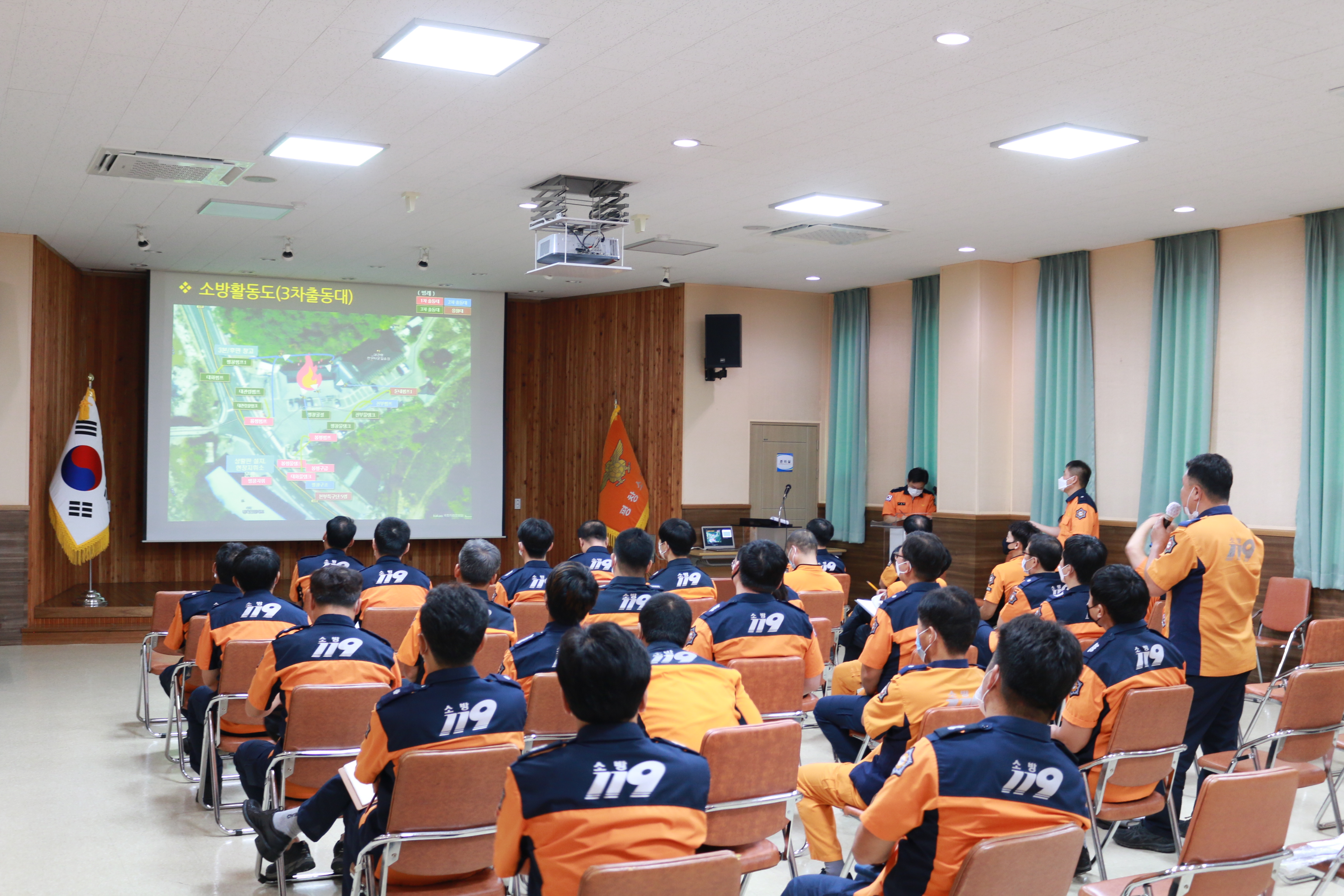 소방서는 화재 당시 상황을 모니터하며 화재 발생 개요 및 관제사항 화재 당시 시간대별 주요 활동사항 화재 당시 동영상 및 사진 분석 현장 활동 시 문제점 및 장애요인 등을 발표하고 심도 있는 토의를 진행했다.