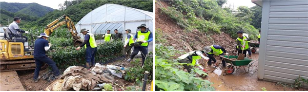 평창송어축제위원회, 제천시 수해복구 자원봉사활동 실시