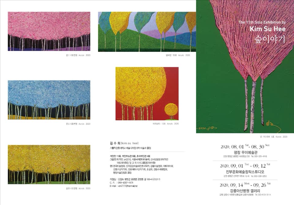 전시일정: 평창무이예술관(8.1~8.30), 진부문화예술창작스튜디오(9.1~9.12), 강릉아산병원갤러리(9.14~9.26)