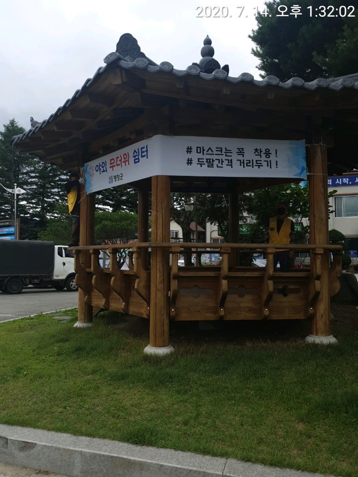 군은 코로나19 확산으로 실내 무더위쉼터 이용이 제한됨에 따라 이에 대한 대안으로 정자,나무그늘 등을 활용한 야외 무더위쉼터 11개소를 지정하였다.