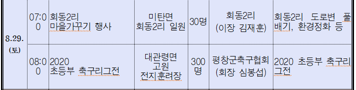 2020년 8월 29일 평창군 주요동정