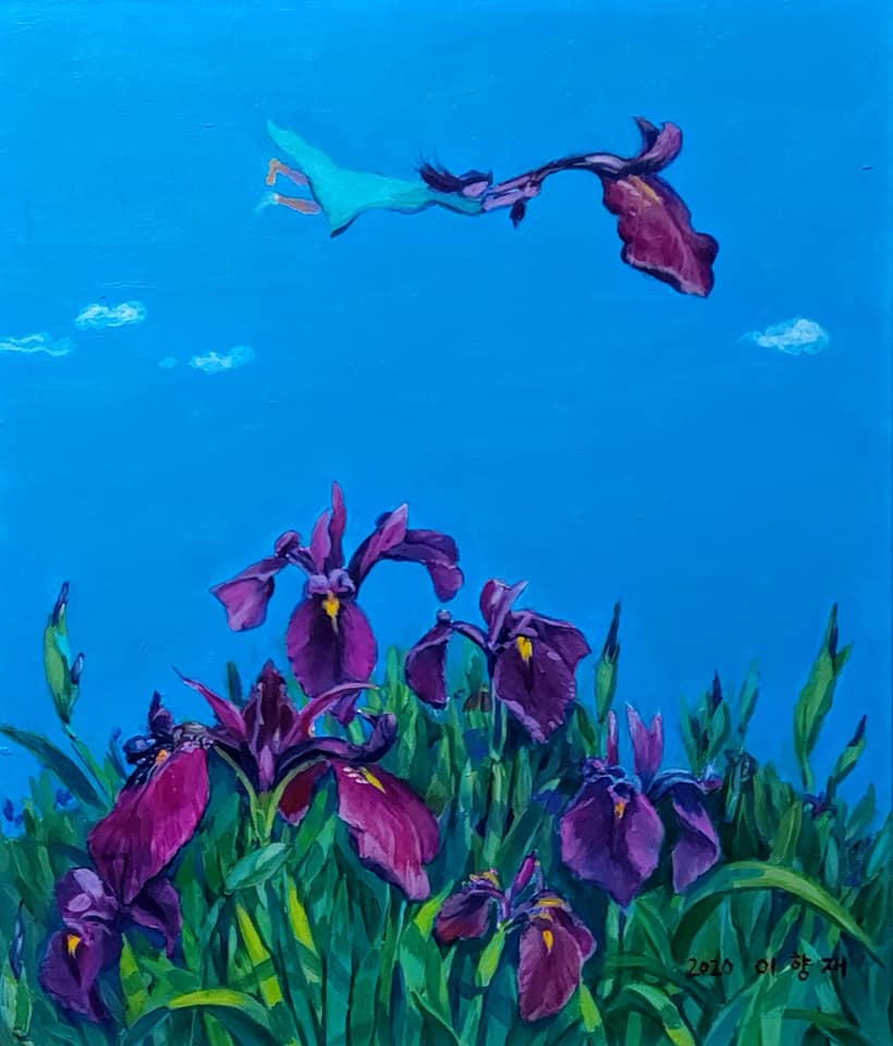 산수국, 꽃창포, 산비장이등 야생화의 특징들을 현실과 초현실의 경계를 넘나드는 양식으로 표현하고 있는데, 화가 자신은 일상의 기록들이라 말하고 있다.