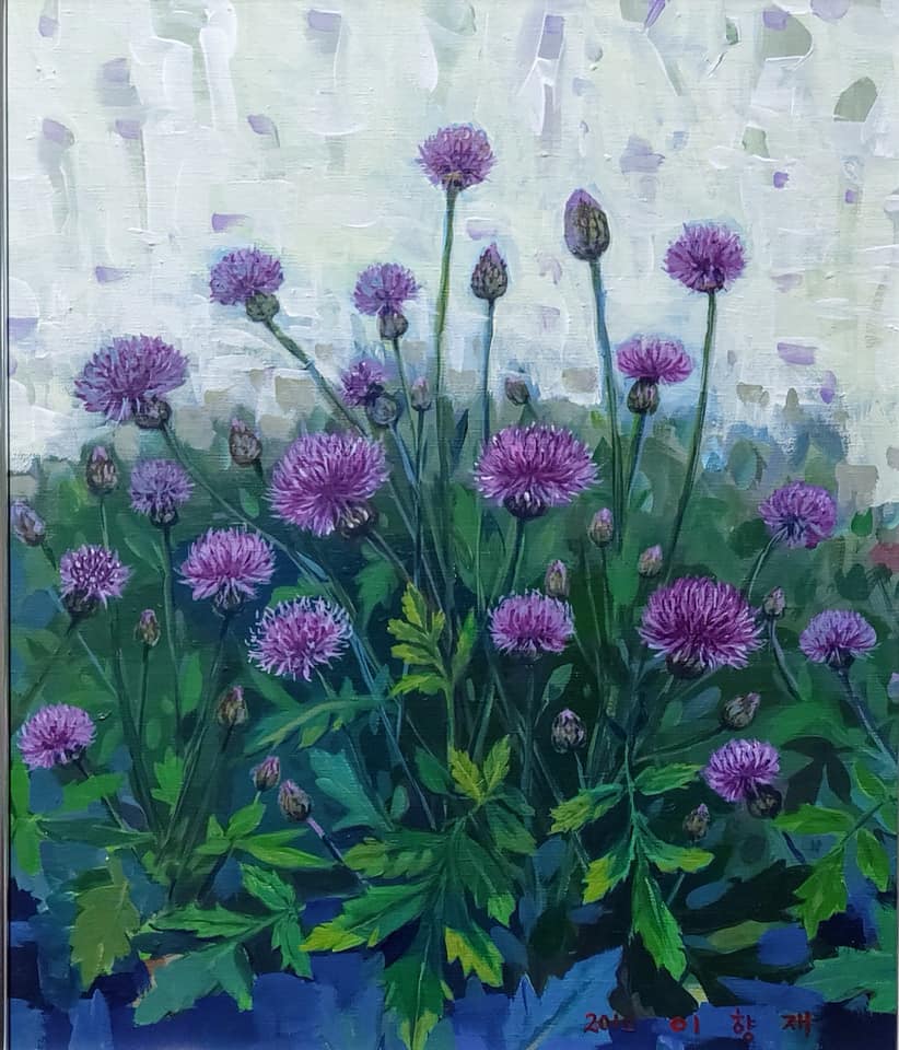 산수국, 꽃창포, 산비장이등 야생화의 특징들을 현실과 초현실의 경계를 넘나드는 양식으로 표현하고 있는데, 화가 자신은 일상의 기록들이라 말하고 있다.