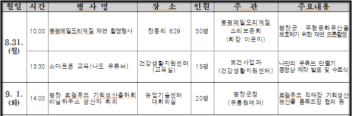 2020년 8월 31일 평창군 주요동정