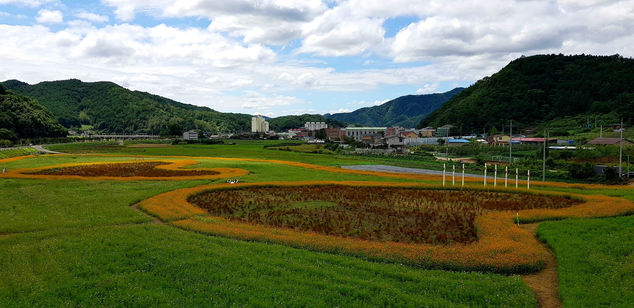 하리에 거주하는 천용호씨는 "매일 아침 코스모스가 활짝 핀 꽃을 보며 운동을 하니 폭염도 장마로 인한 시름도 다 떨칠 수 있다."며 가을꽃의 만개를 반겼다.