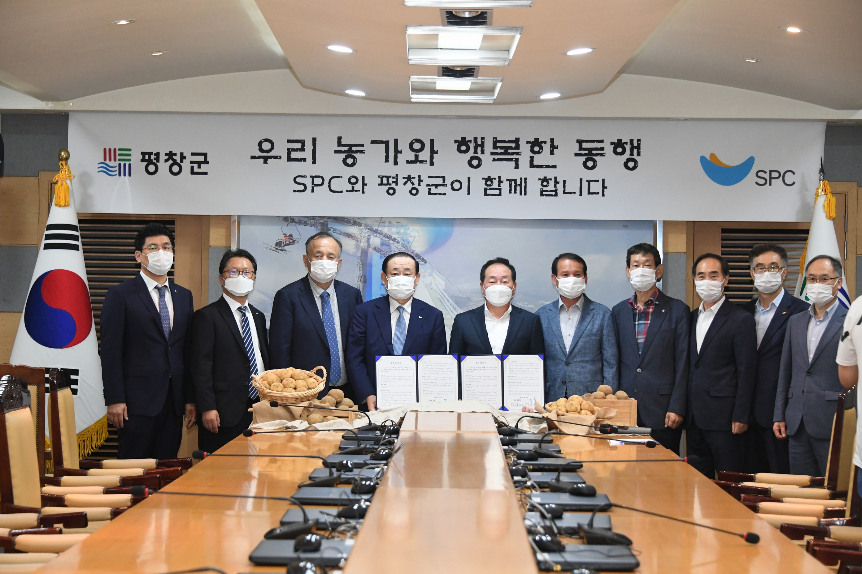 이날 업무협약 체결은 한왕기 평창군수와 황재복 SPC그룹 대표이사가 참석하여 서명했으며 이중희 가맹점주협의회장과 김정권 강원감자조합공동사업법인 대표, 유영환 대관령원예농협 조합장이 함께 참석해 평창군에서 생산된 농산물의 공급 확대와 판촉·홍보 등 상호협력 강화를 위한 방안을 논의했다.