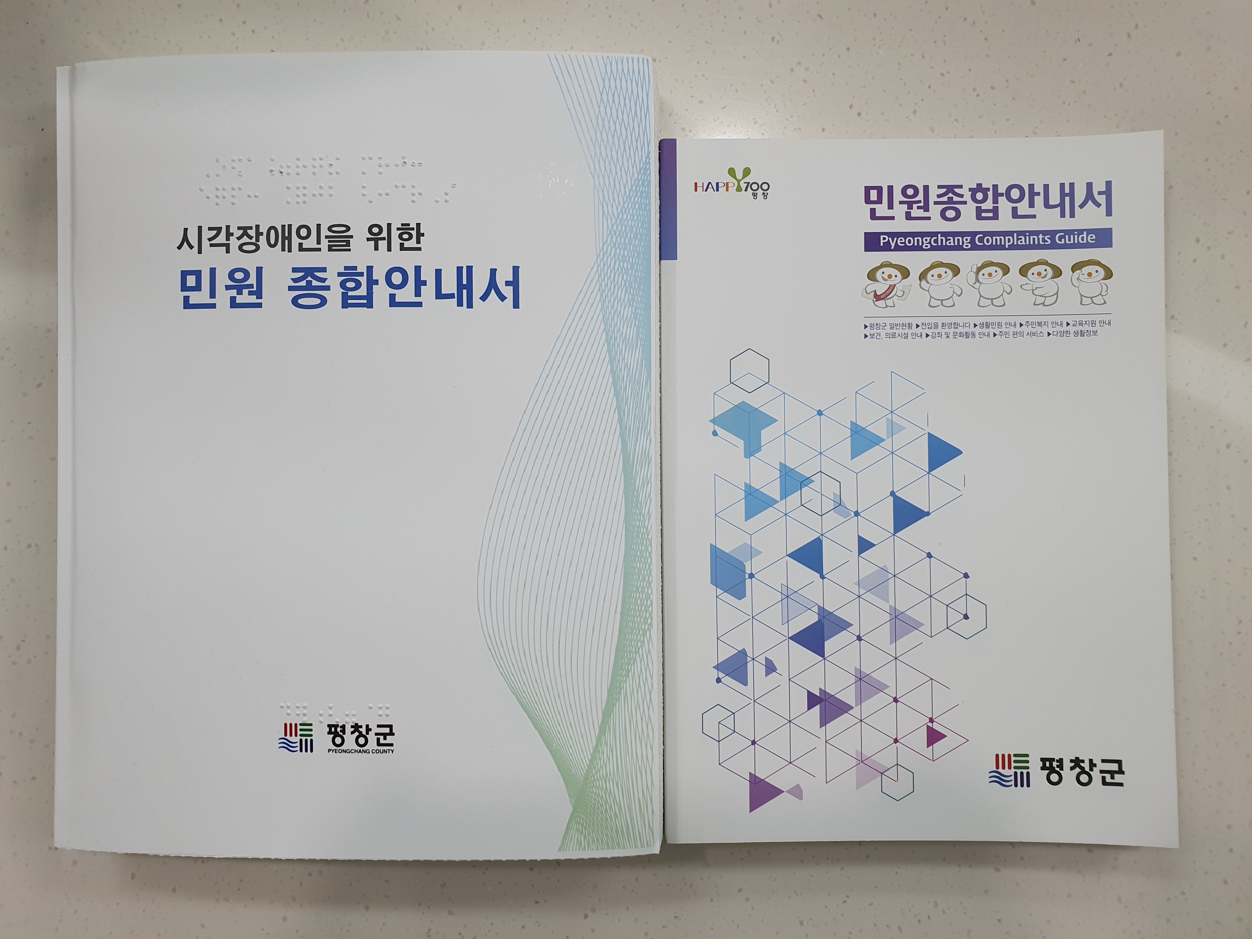 평창군 군민들을 위해 민원종합안내서를 비롯해 점자 민원종합안내서를 발간하였다.