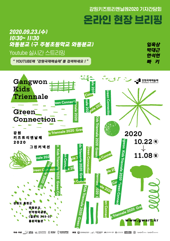 한젬마 강원키즈트리엔날레2020 예술감독(크리에이티브 디렉터)와 신지희 강원국제예술제 운영실장, 임옥상 작가, 한석현 작가, 박대근 작가, 빠키 작가 등이 참석하는 현장 브리핑은 코로나19 확산 방지를 위해 유튜브 라이브 생중계를 통해 방송된다. 시청자들이 참여하는 질의 응답 시간도 별도로 마련된다. 강원국제예술제 공식 유튜브(bit.ly/gangwonart) 채널을 통해 참여할 수 있다.