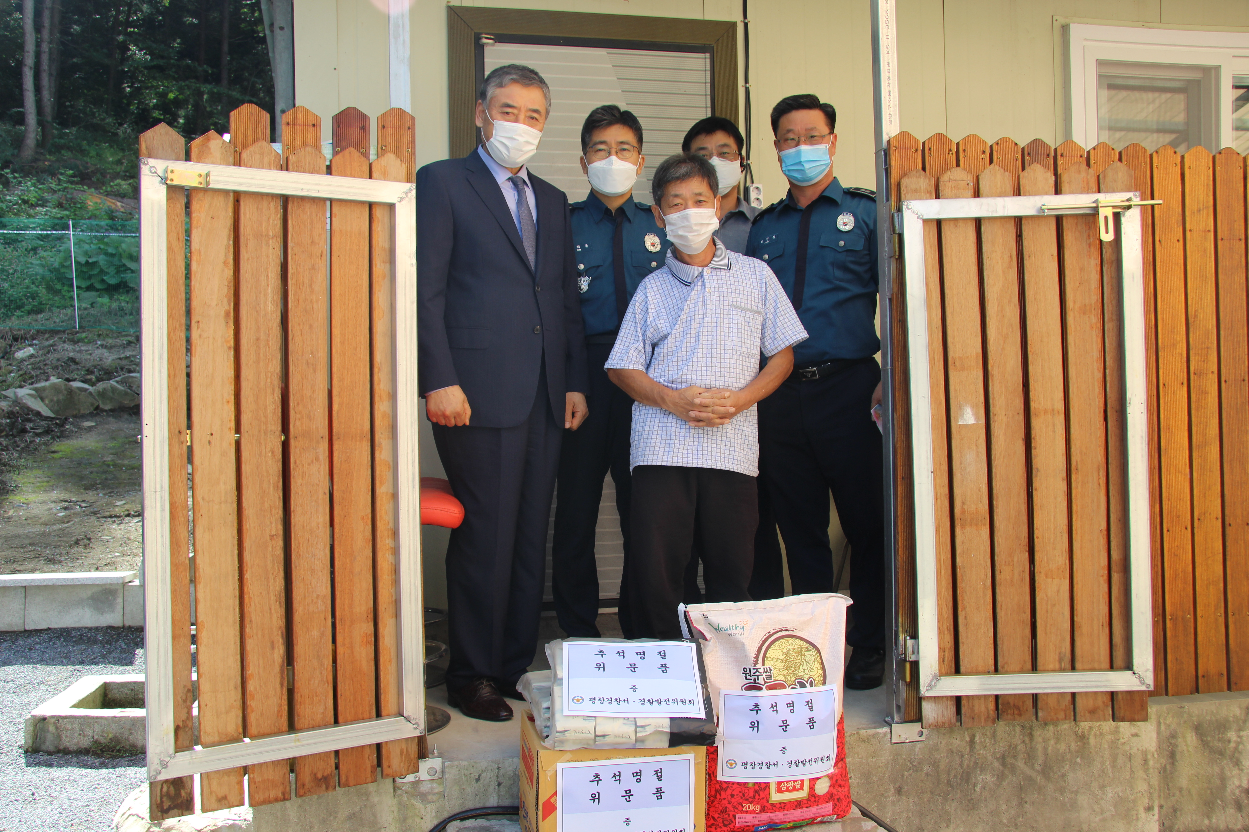 평창경찰서(서장 김희종)에서는 22일 소외이웃 주거지에 방문, 쌀, 라면 등 생필품과 위문금을 전달하였다. 노후 주택에 홀로 거주하며 기초연금으로 생활하는 등 추석 명절 소외된 이웃 12명을 선정하여 위문품을 건내며, 코로나-19로 인해 어려운 시기를 같이 이겨내자는 응원의 메시지도 함께 전달하였다.