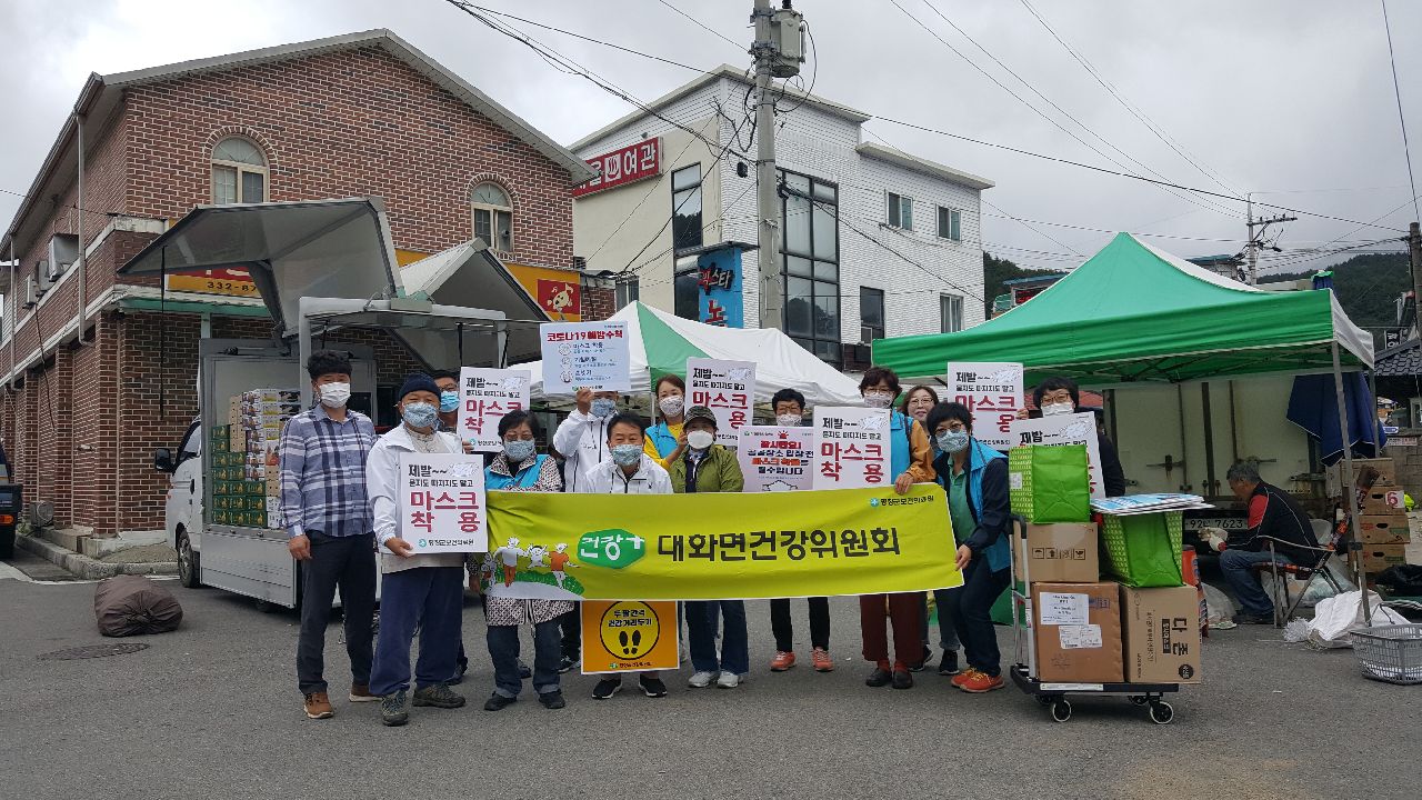 대화면 건강위원회 회원들은 ‘마스크 착용은 의무’라고 적힌 현수막을 걸고 주민들에게 마스크와 홍보물품, 팸플릿 등을 나눠주며 올바른 마스크 사용법에 대해 안내했으며, 시가지 내 상가 및 공공·금융기관에 ‘마스크 착용 필수’라는 문구가 적힌 스티커를 부착하는 등 마스크 착용의 홍보에 나섰다.