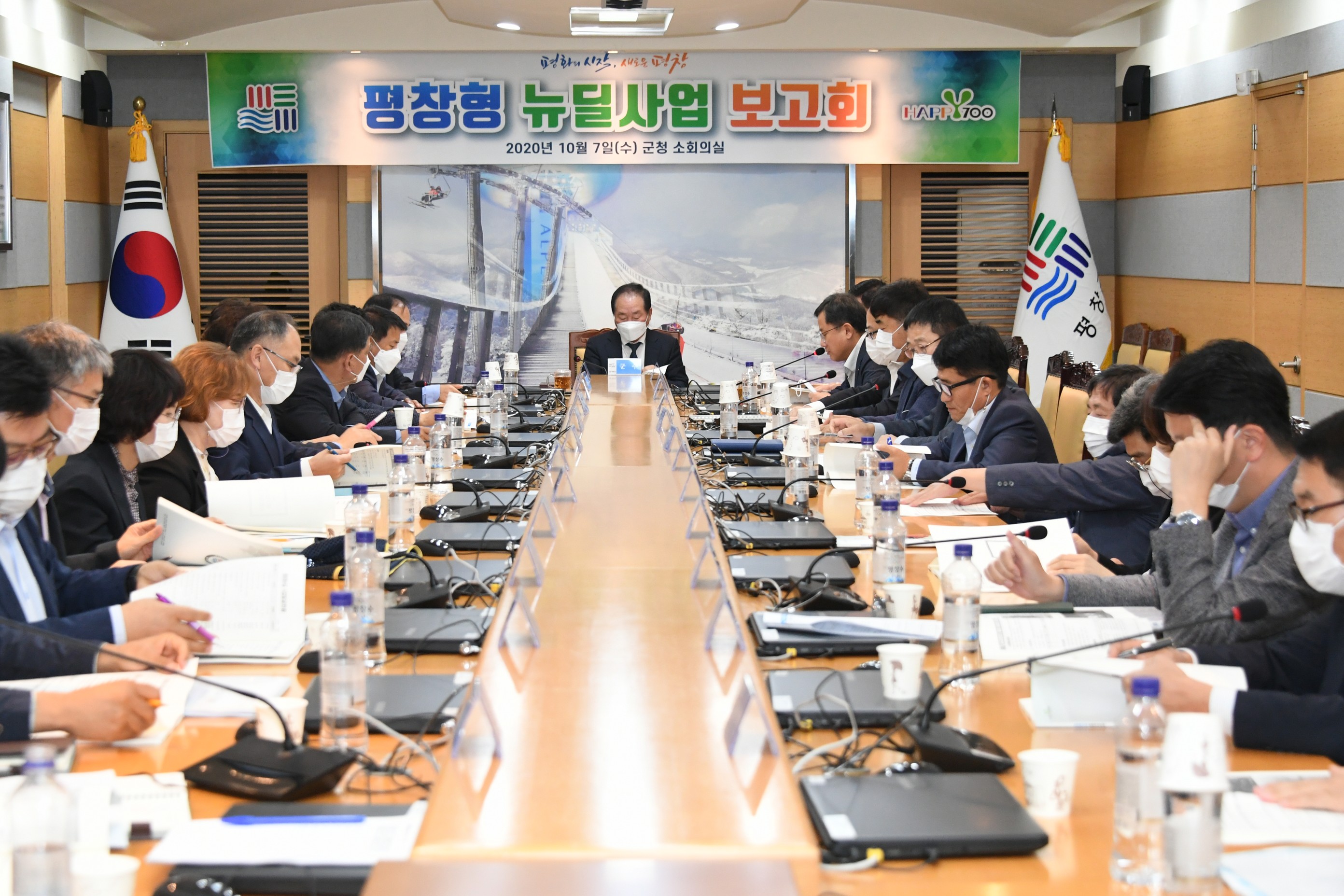 평창군은 10월 7일(수) 군청 소회의실에서 한왕기 군수와 간부공무원이 참석한 가운데 평창형 뉴딜사업 보고회를 개최했다.