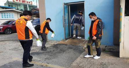 평창읍남성의용소방대, 주말 다중이용시설 방역 실시