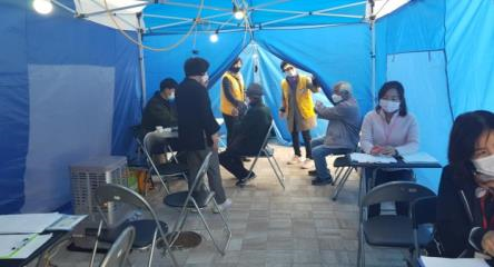 평창읍적십자봉사회(회장 김은숙)는 10. 19. ~ 21. 3일간, 그리고 10. 26. ~ 27. 2일간 독감 접종을 위해 보건의료원을 찾은 어르신들을 대상으로 치매 자가 진단을 받을 수 있도록 안내하는 봉사활동을 실시했다.
