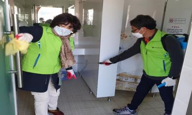미탄면 건강위원회 다중이용시설 방역소독 봉사 실시