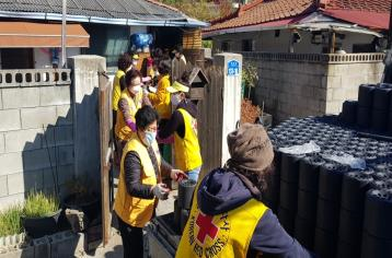 평창읍적십자봉사회, 6개 가정에 연탄 2,500장 나눔