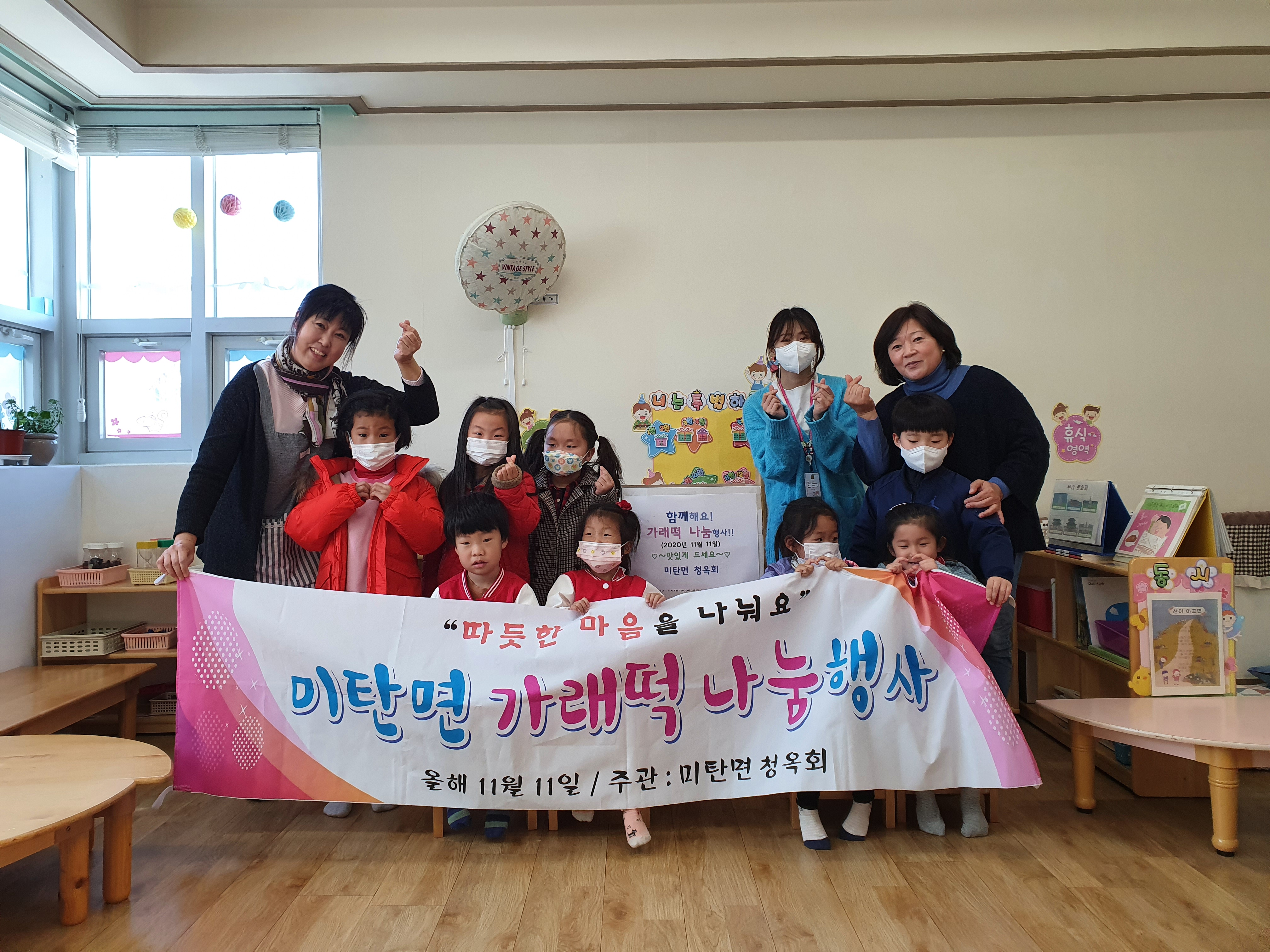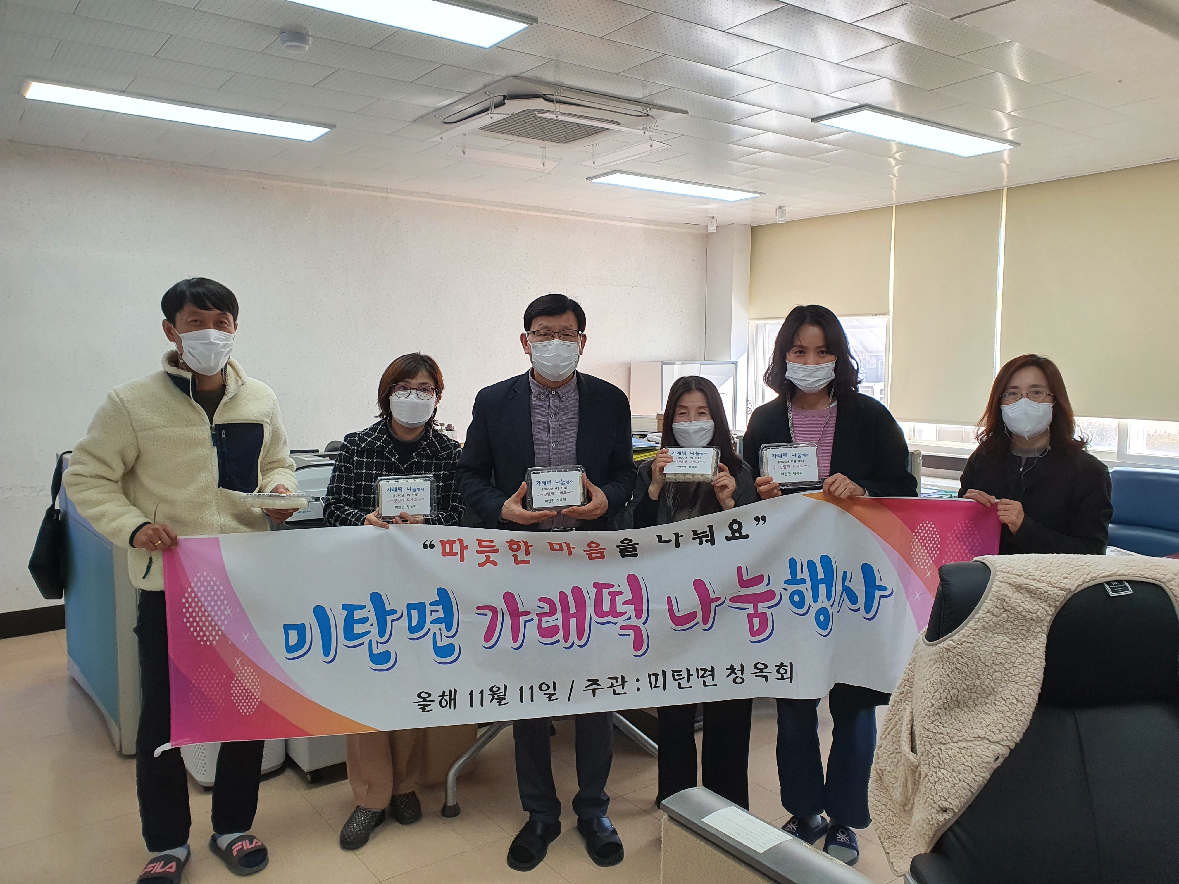미탄면 청옥회(회장 이정의)는 11월 11일(수) 미탄면 관내 기관 및 사회단체를 대상으로 가래떡 나누기 행사를 진행하였다.