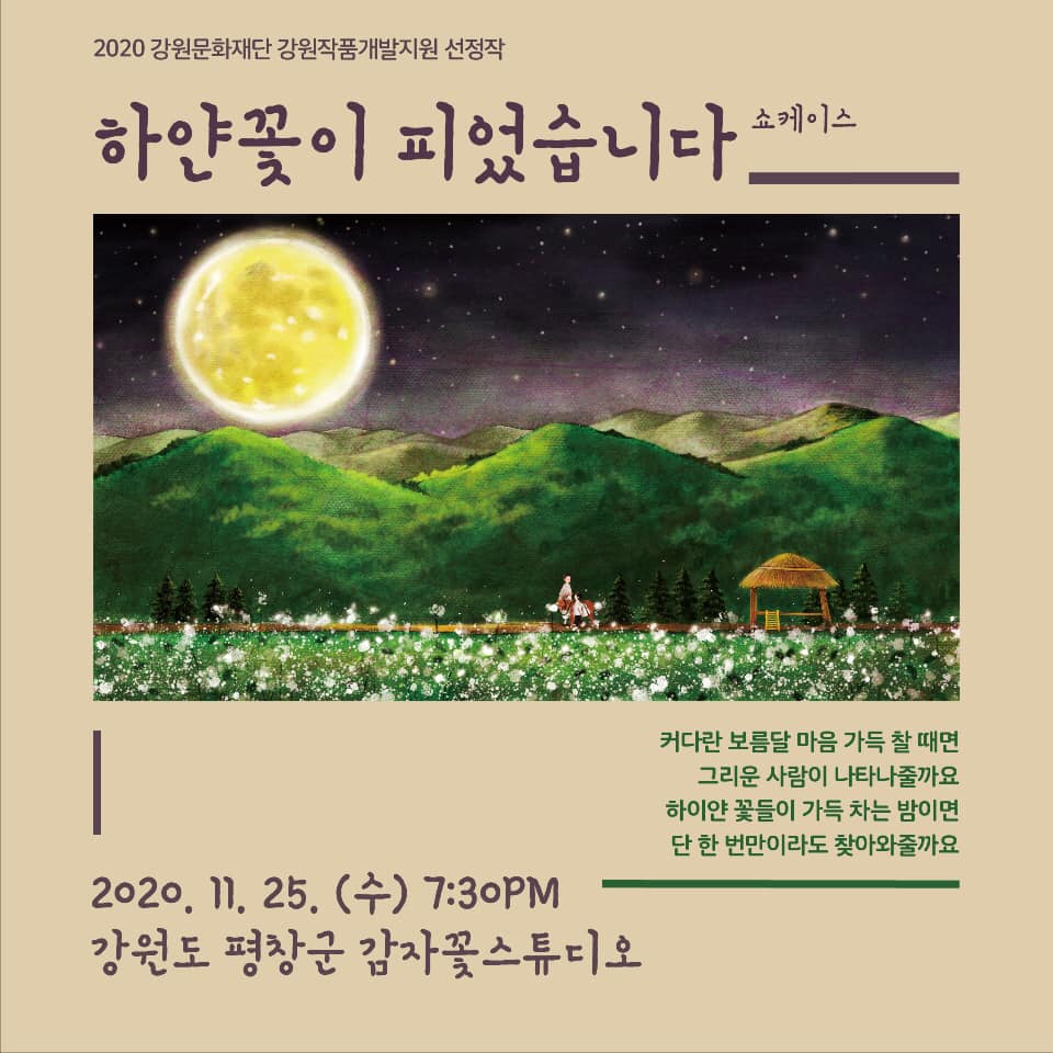 강원소설 음악극 <하얀 꽃이 피었습니다> 일시 : 2020년 11월 25일(수) 오후 7시 30분