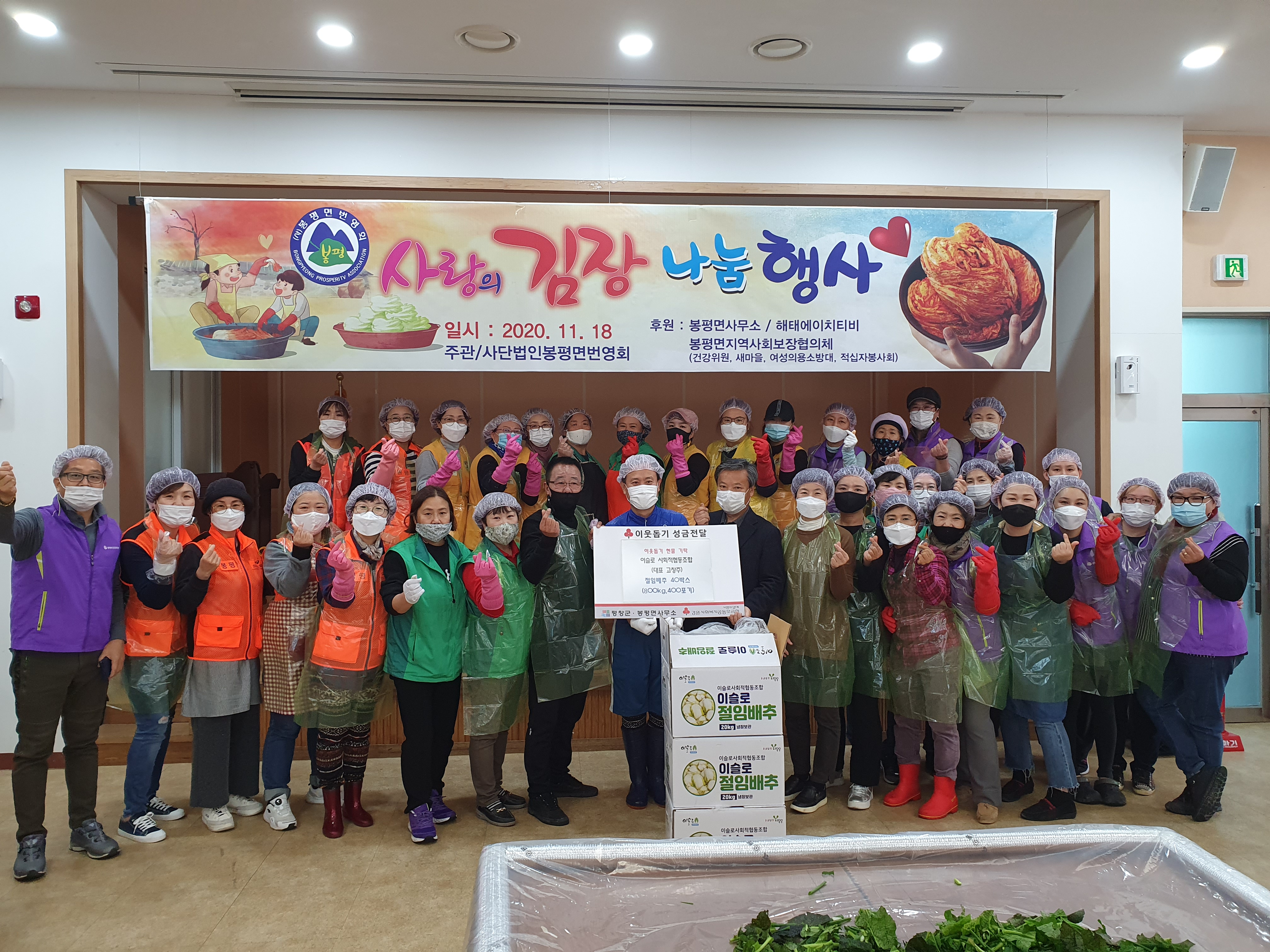 봉평면 번영회(회장 최창선, 사무국장 이천기)는 11월 18일(수) 봉평면 다솜관에서‘2020 봉평면 사랑의 김장 나눔 행사’를 개최했다.