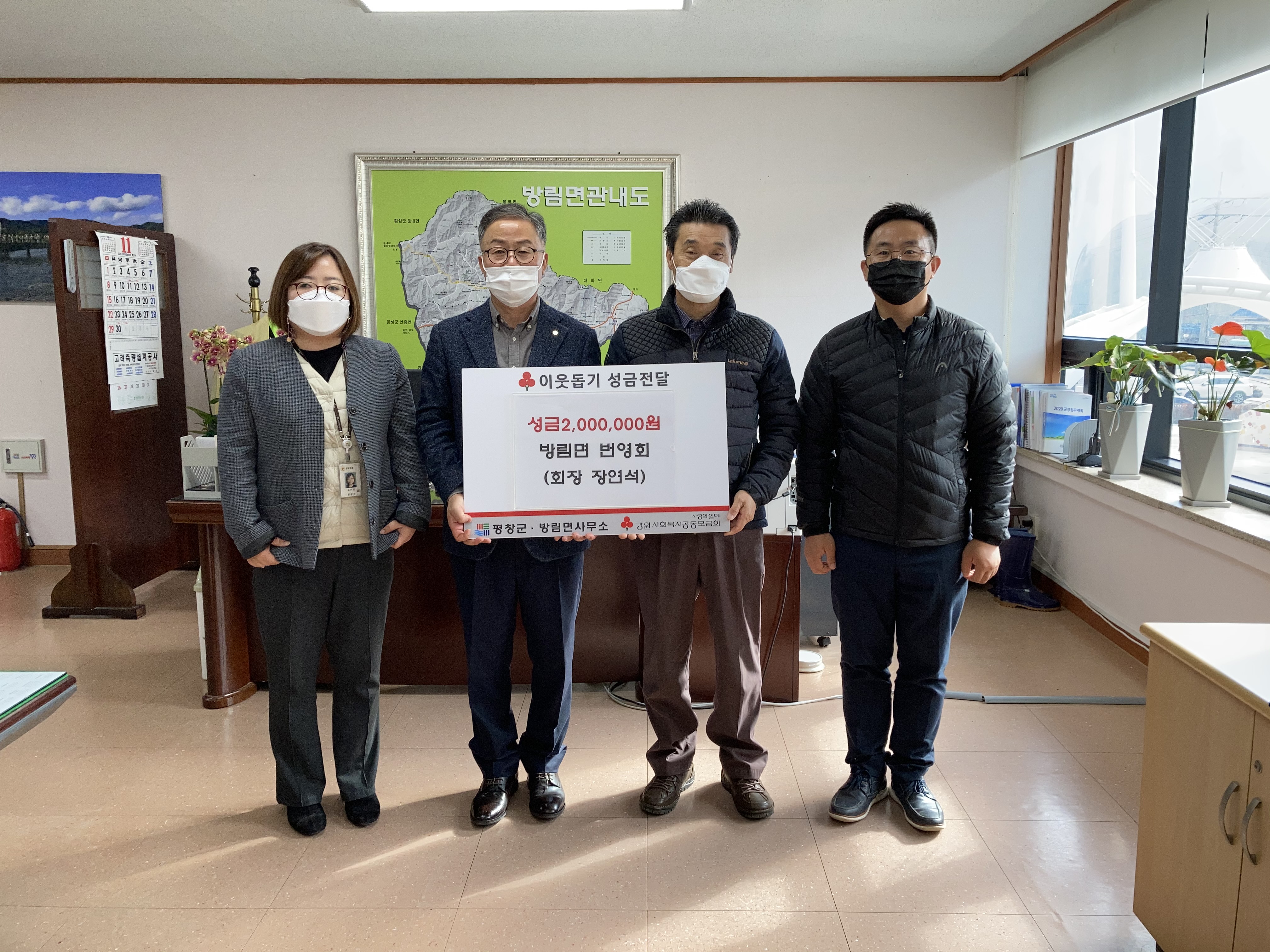 이대환 방림면장은 “지역경제의 어려운 상황 속에서도 성금을 전달해 소외되고 어려운 이웃들이 따뜻한 연말을 보낼 수 있도록 도와줘주셔서 감사하다.”고 전했다.