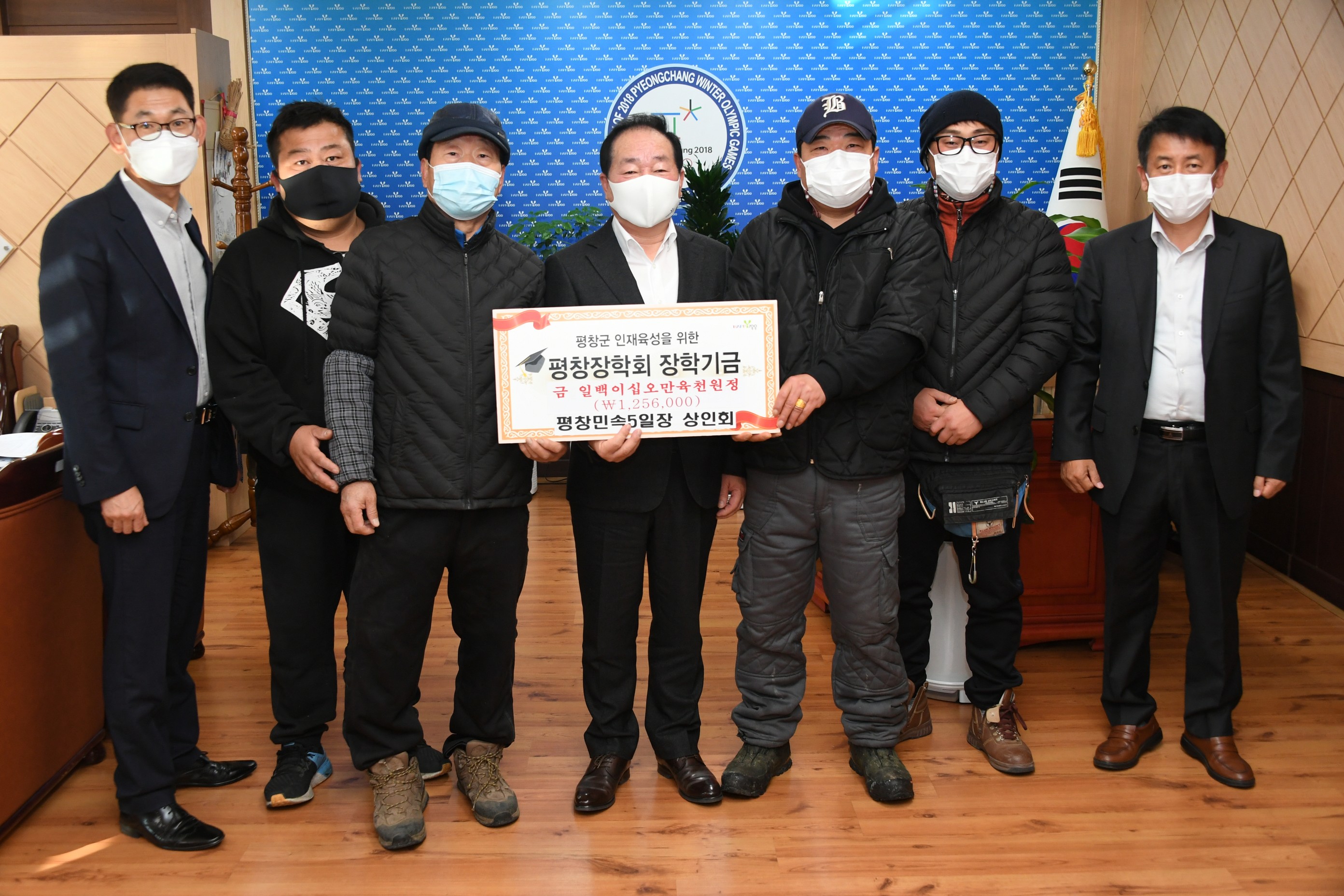 평창 민속5일장 상인회(회장 최찬섭)는 11월 30일(월) 평창군청을 방문해 (재)평창장학회에 인재육성을 위해 장학금 1,256천원을 전달했다.