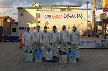 용평면 상인연합회(회장 심영섭) 및 장평1리 이장(박우원)30일에 열릴 장평5일장을 위하여, 장터 구역 및 장평일대를 방역·소독작업을 진행했다.
