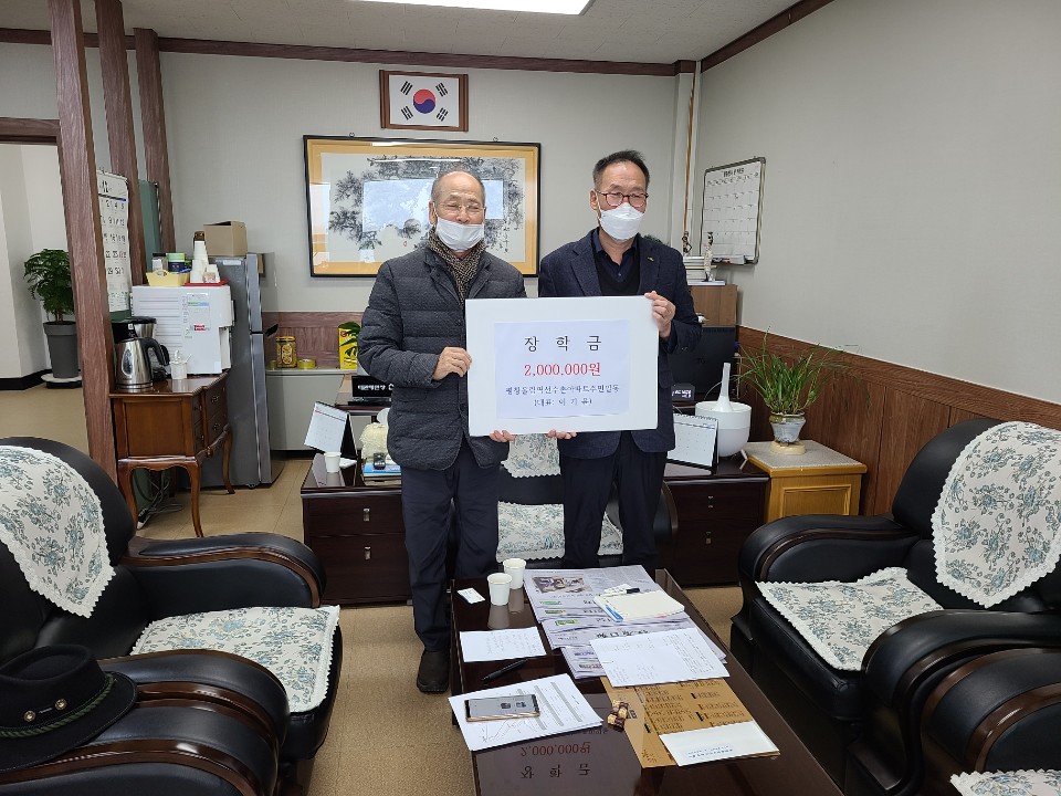 평창올림픽선수촌 아파트 주민들은 작년에도 이웃돕기 성금 이백만원을 기탁한데 이어 올해도 지역 내 인재육성을 위한 장학기금 기탁으로 지역사회의 귀감이 되고 있다.