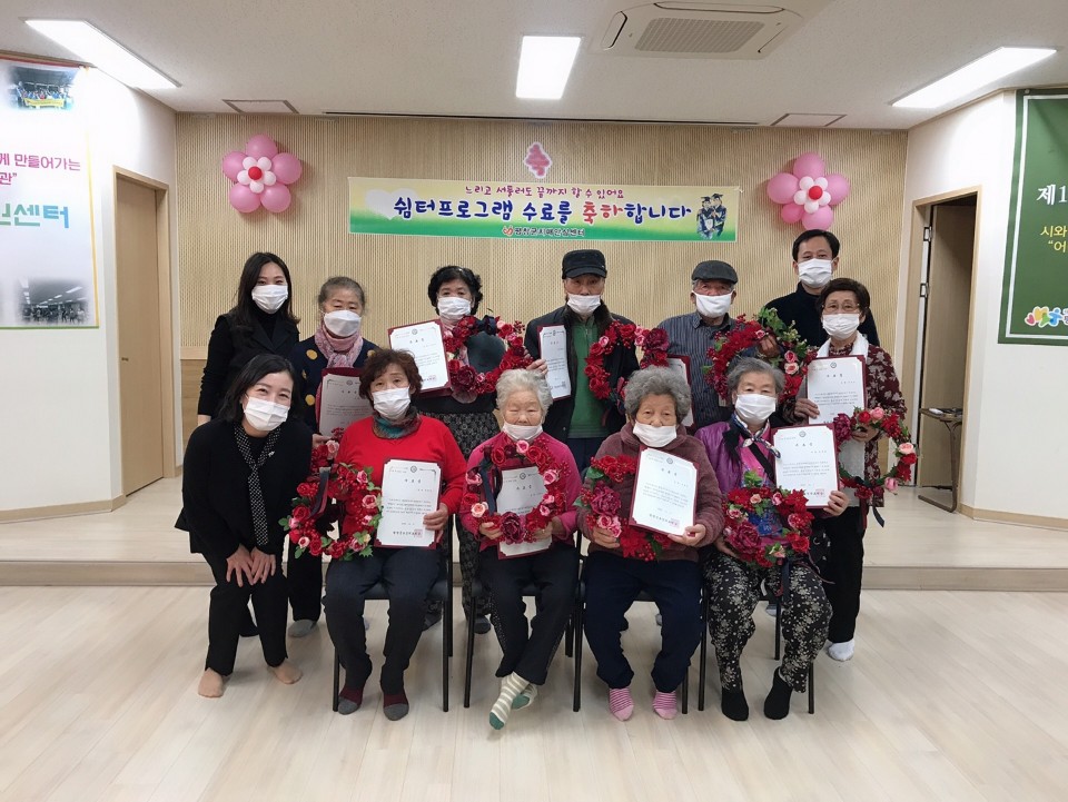 수료식은 수료증 및 사진앨범 수여와 더불어 그동안 참여했던 활동영상을 감상하는 것으로 진행됐으며, 군은 수료식이 끝난 후에 치매를 예방하기 위해 자기 주도적 학습을 할 수 있도록 인지키트와 영양음료 ・ 간식 등을 배부했다.
