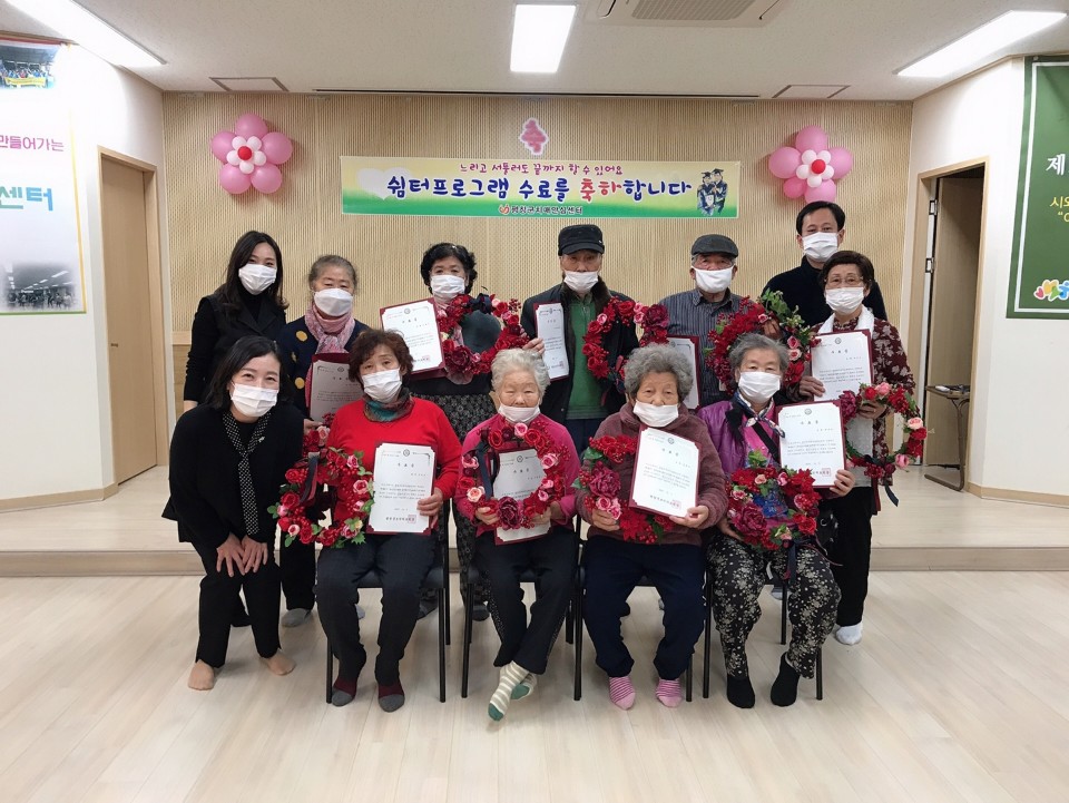 수료식은 수료증 및 사진앨범 수여와 더불어 그동안 참여했던 활동영상을 감상하는 것으로 진행됐으며, 군은 수료식이 끝난 후에 치매를 예방하기 위해 자기 주도적 학습을 할 수 있도록 인지키트와 영양음료 ・ 간식 등을 배부했다.