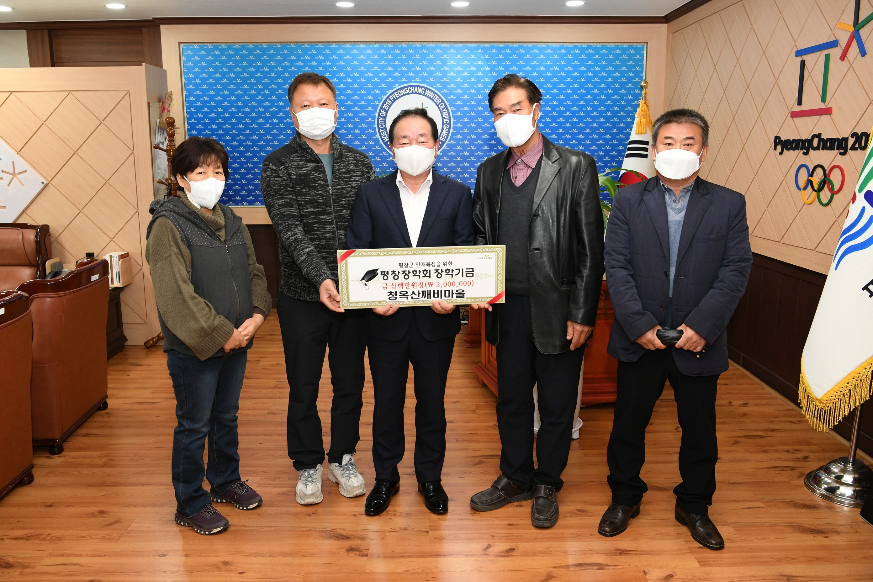 이번 청옥산깨비마을이 평창장학회에 기탁한 300만원은 2020년 농협이 주관한 제3회 “아름다운 농촌마을 가꾸기 경진대회”에서 전국 176개의 참여마을 중 대상(1위)에 선정되어 받은 시상금이다.
