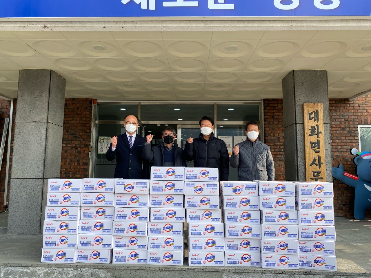 대화면 1968년생 12명이 모인 대화68청우회(회장 남진삼)에서 대화면 어려운 이웃에게 도움이 되기 위하여 삼양라면 50박스를 면사무소에 기부하였다. 대화68청우회는 작년 연말부터 불우이웃을 위하여 꾸준히 기부해오고 있다.