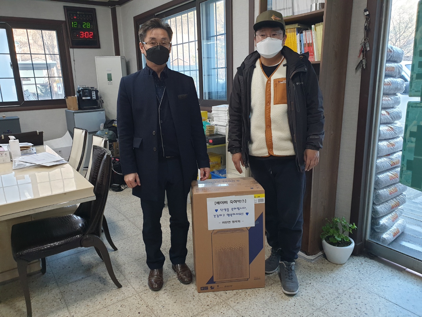 이번 베이비 축하박스는 11월에 태어난 출생아 가정에 공기청정기를 전달하였으며, 미탄면 사회기관 단체 모임인 청옥회(회장 이정의)의 후원을 받고 있다.