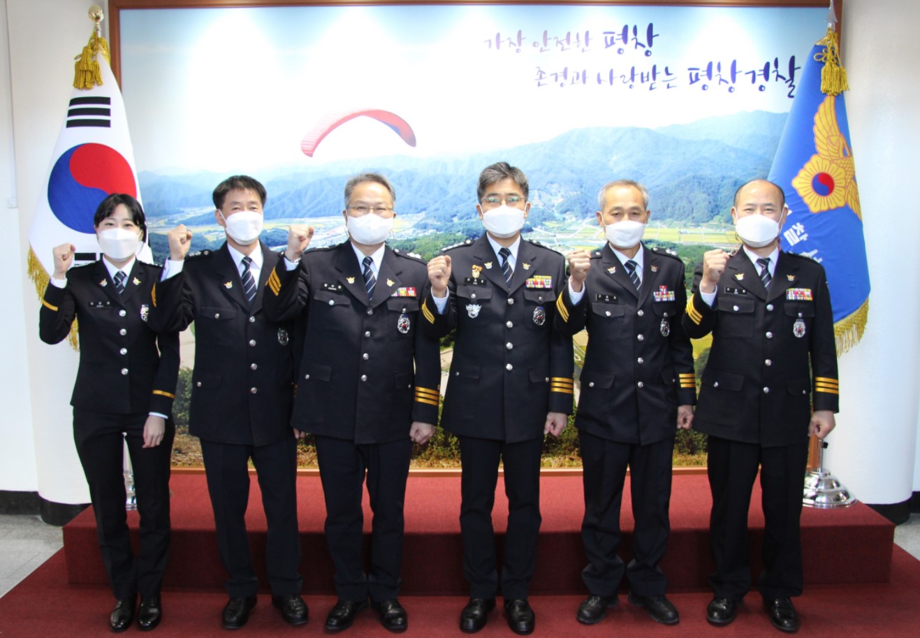 평창경찰서(서장 김희종)에서는 31일 오후 2시경, 포토존에서 서장, 각 과장 등 직원들이 참석한 가운데 생활안전교통과 신승덕 경감, 고승기 경감, 황수철 경감, 소순호 경감, 최운영 경장에 대한 승진임용식을 개최했다. 이후 정보보안과 김남현 경장 등 2020년 업무 유공자 표창수여식을 진행했다.