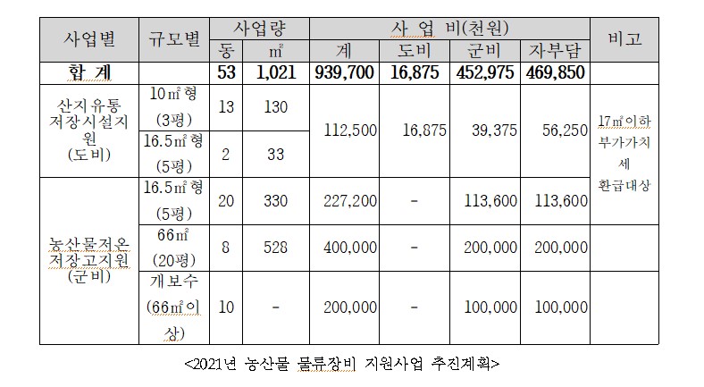2021년 농산물 저온저장고 지원사업 추진 계획