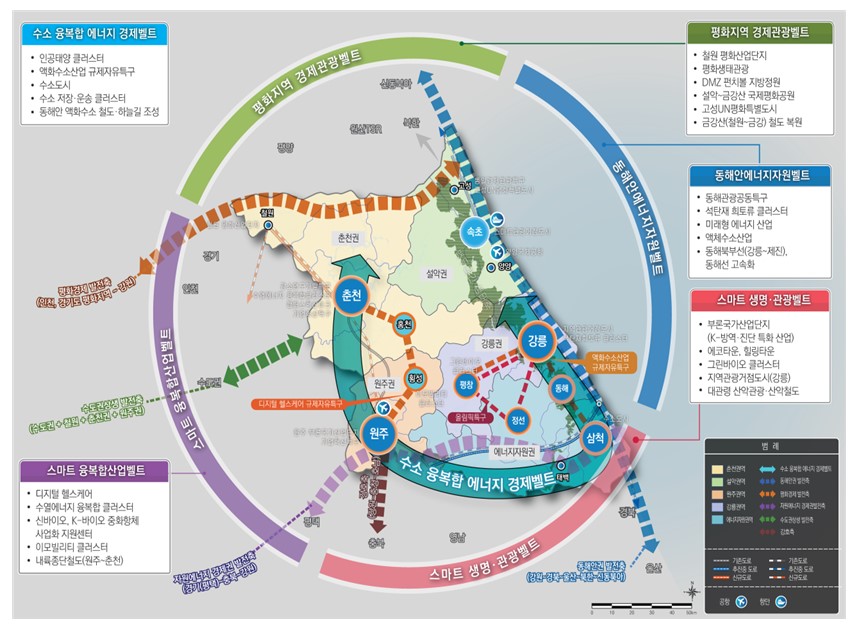 - 강호축・수도권상생・동해안권・자원에너지경제권・평화경제권 발전축 연계협력 초광역 사업