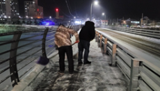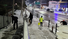 진부자율방범대, 지난 밤 강설 직후 시가지·인도교 긴급제설 작업