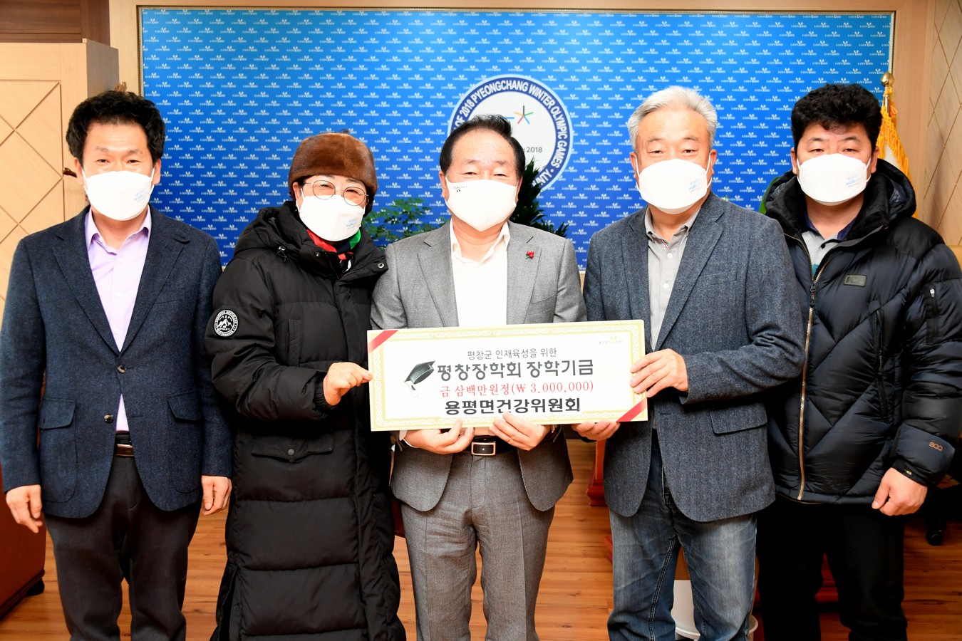 용평면건강위원회(위원장 김낙현)는 1월 19일(화) 평창군청을 방문해 (재)평창장학회에 인재육성을 위한 뜻을 모아 마련한 장학금 200만원을 전달했다.