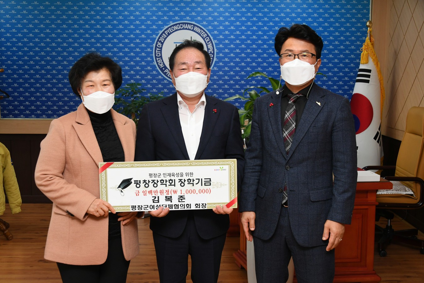 김복준(평창군여성단체협의회 회장)21() 평창군청을 방문하여 ()평창장학회에 장학금 100만원을 전달하였다.