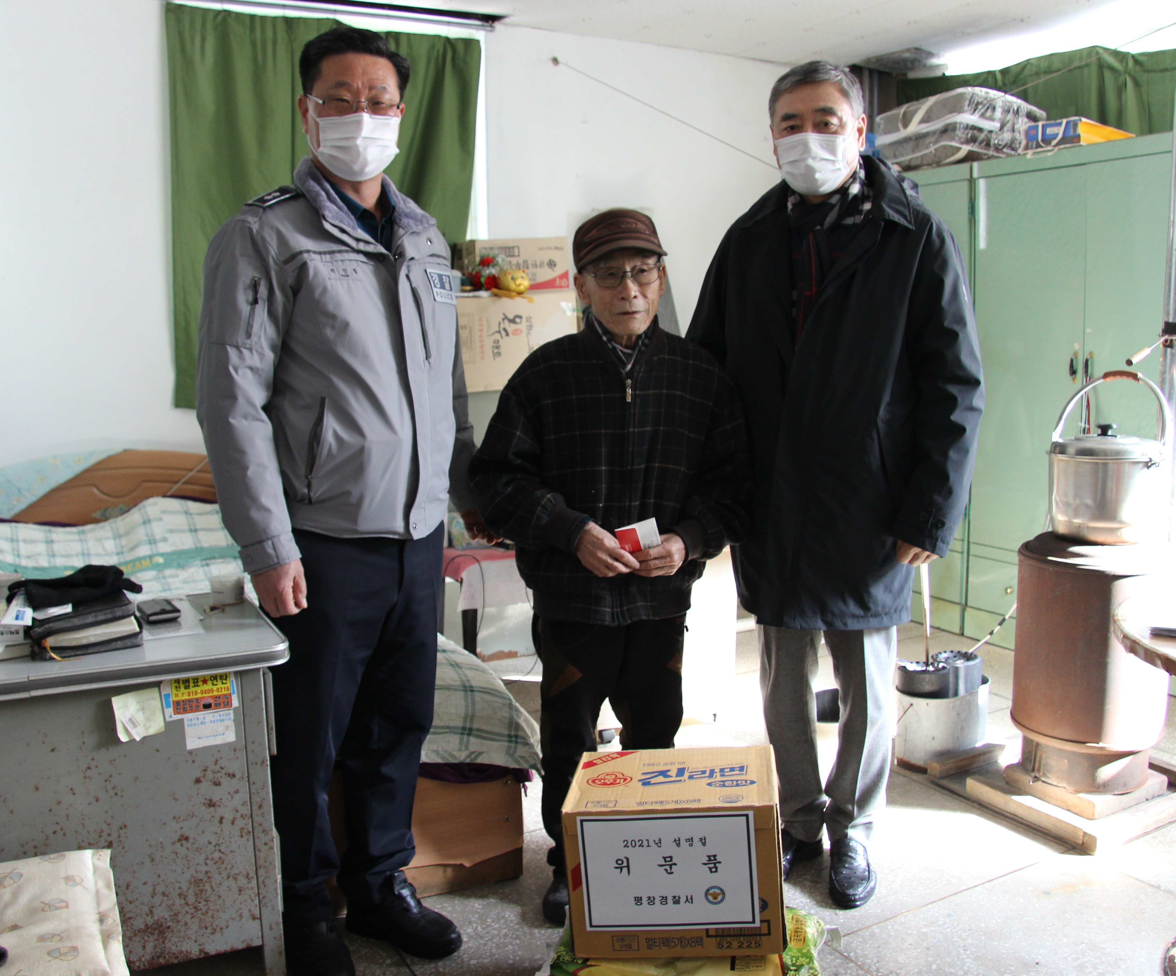 평창경찰서(서장 김희종)에서는 4일 오전 11시경 소외이웃 주거지에 방문하여 쌀, 라면 등 생필품과 위문금을 전달했다. 노후 주택에 홀로 거주하며 기초연금으로 생활하는 등 설 명절 소외된 이웃 12명을 선정하여 위문품을 건네며, 코로나-19로 인해 어려운 시기를 같이 이겨내자는 응원의 메시지도 함께 전달했다. 이번 위문은 코로나-19 방역 지침에 따라 마스크 착용, 일정 거리를 유지하고 필요 최소 인원만 방문하는 방식으로 진행했다.