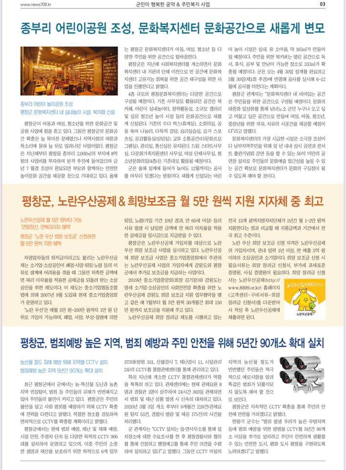 평창신문은 코로나 19로 인하여 2020년 평창신문을 1회만 발행하게 되었습니다. 구독자님의 양해 부탁 드립니다.