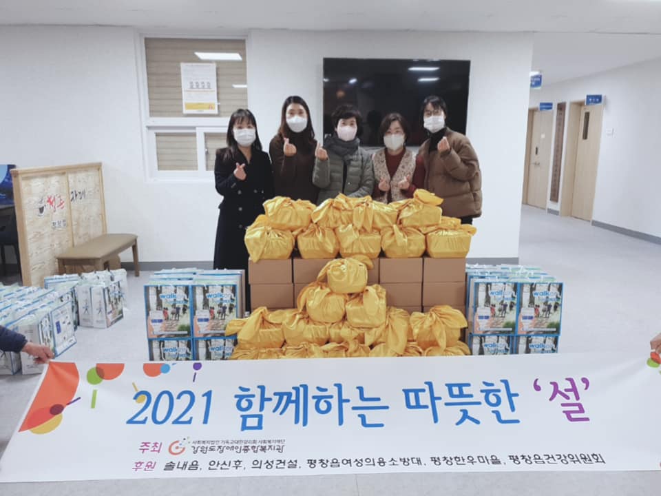 강원도장애인종합복지관 평창분관은 29() 설을 맞아 홀로가구 및 중증인 장애인 50가구에 명절용 가정간편식과 코로나 키트(천마스크, KF94 마스크, 치솔, 치간치솔)를 전달했다.