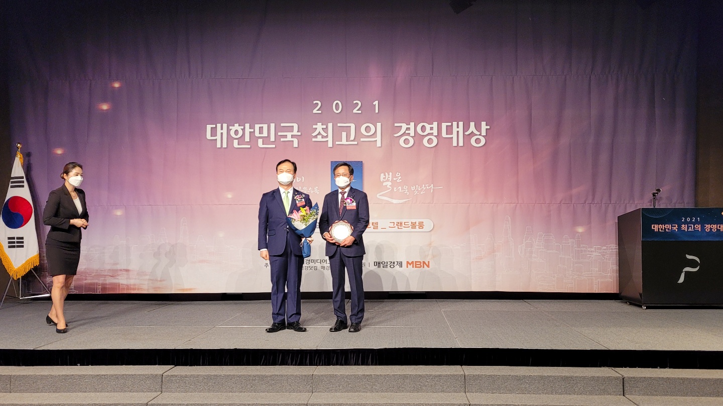 ‘2021 대한민국 최고의 경영대상행사는 매경미디어그룹, 매경닷컴, 매경비즈가 주관하고 매일경제신문, MBN, 과학기술정보통신부, 산업통상자원부, 보건복지부, 고용노동부, 중소벤처기업부, 동반성장위원회, 식약처가 후원하며 시상은 34() 11시 더플라자호텔 서울 그랜드볼룸에서 진행됐다.