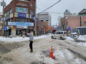 진부자율방범대(대장 이용기) 대원들은 시가지 제설작업이 이루어진 이틀(3.2.~3.3.) 동안 차량통제 지원을 하였으며, 시가지와 송정택지를 연결하는 인도교 제설작업도 자발적으로 실시하여 보행자들이 안전하게 통행할 수 있도록 배려했다.