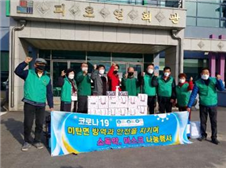 ○ 특히, 많은 주민이 방문하는 미탄면사무소에도 주민들과 대면 시에 사용해 달라며 마스크와, 소독약 등도 함께 기증하였음.
